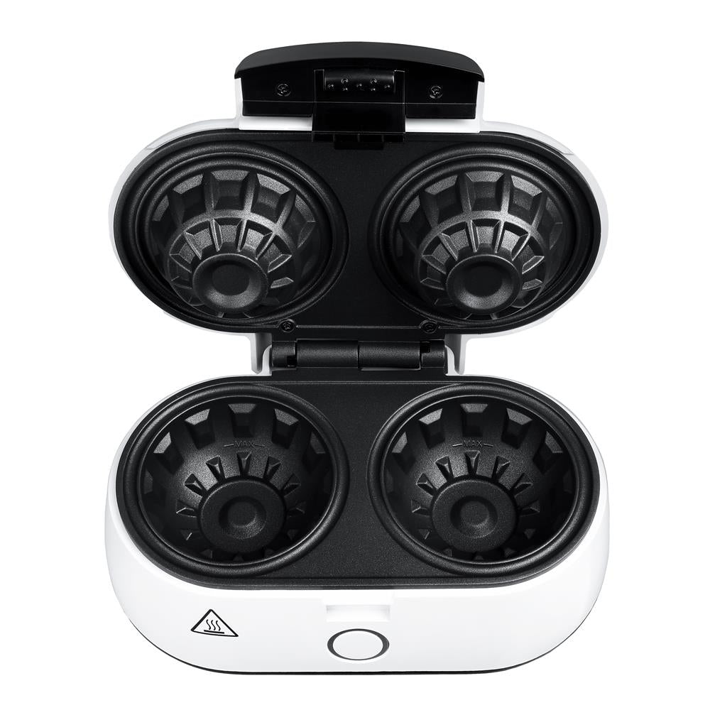Vergessen Sie das mühsame Schaben und die schwierige Reinigung. Dank der Antihaftbeschichtung der Heizplatten wird die Zubereitung und Reinigung der Waffelschalen zum Vergnügen. Jede Waffelschale hat eine Größe von 9,0 cm x 4,0 cm und eignet sich daher sowohl zum Servieren einzelner Portionen als auch zum Befüllen mit verschiedenen Leckereien. Dank des Cool-Touch-Griffs können Sie die Waffelmaschine bedienen, ohne Angst vor Verbrennungen zu haben.