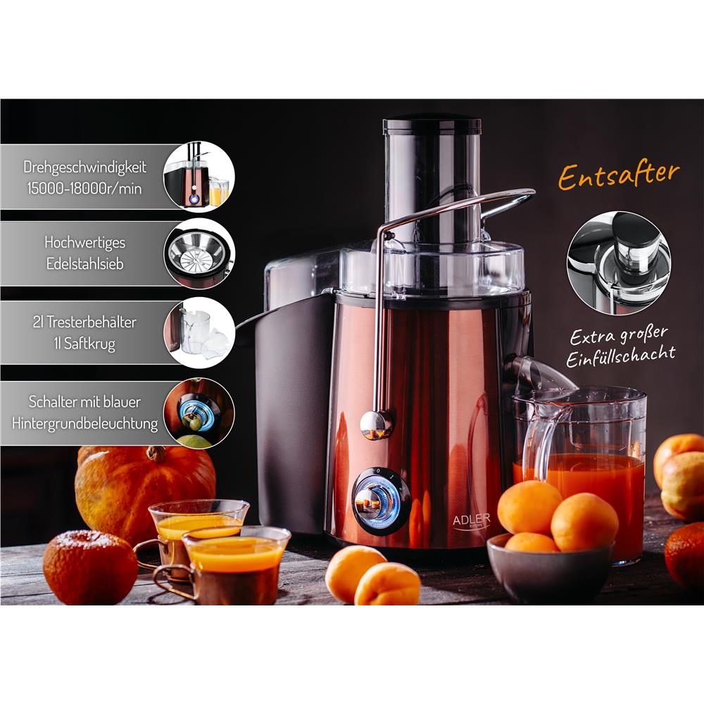Adler AD 4129 Entsafter 1000W elektrische Saftpresse schwarz Kupferfarben