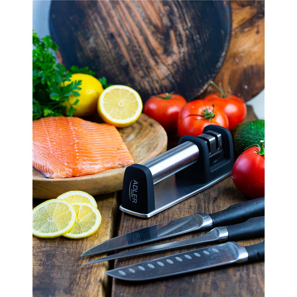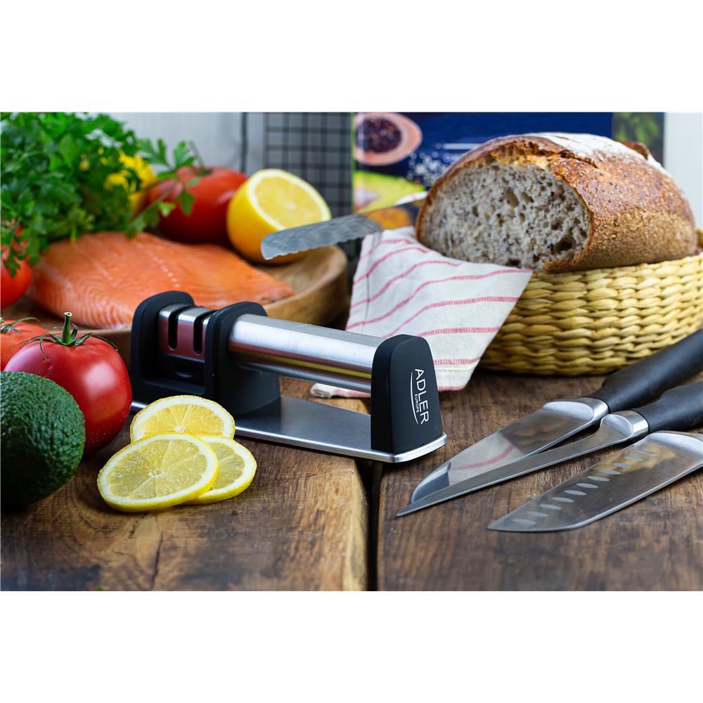 Adler AD 4489 2-Phasen Messerschärfer mechanisch / manuell grob und fein Küchenmesser schärfen und polieren, kompakt