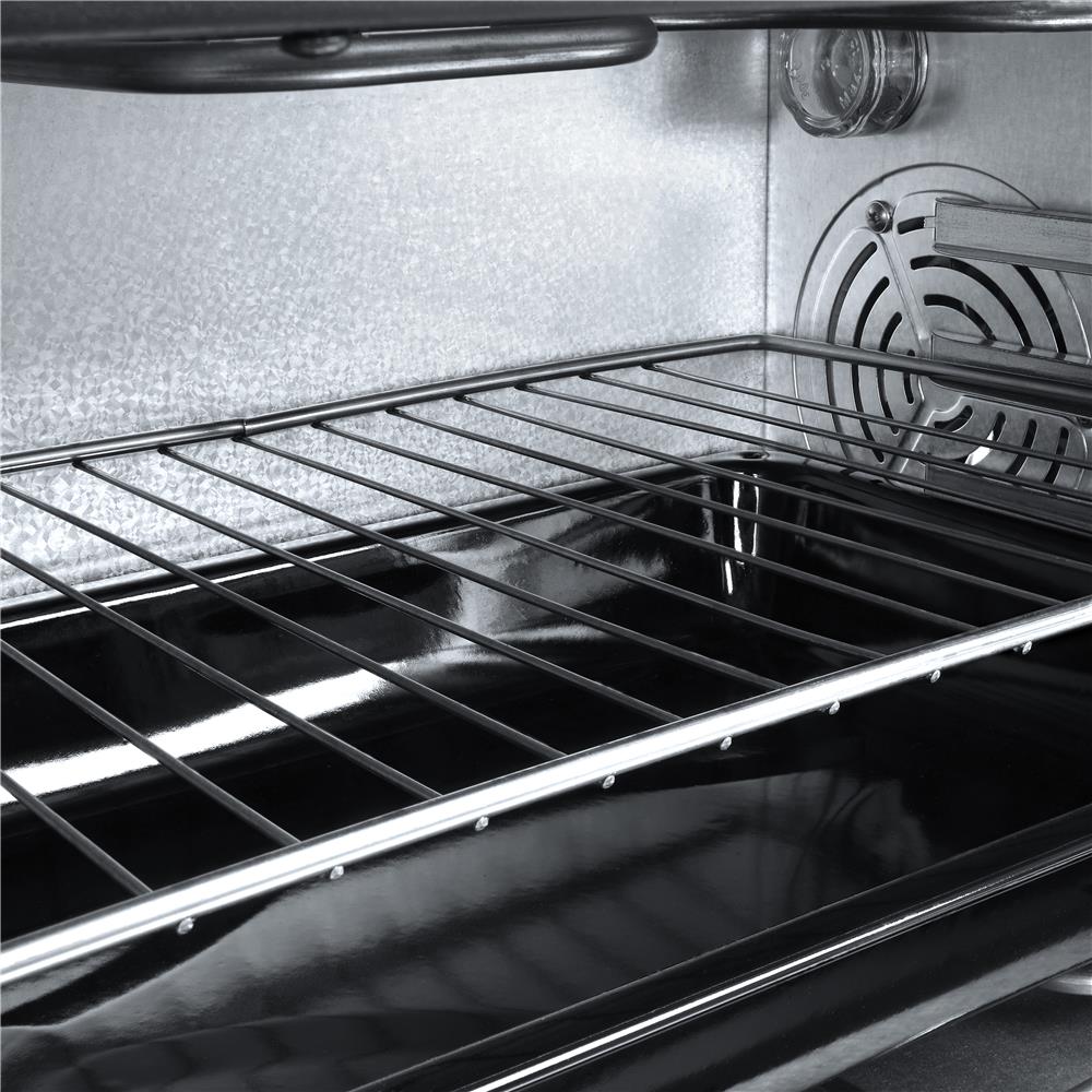 - Inkl. Zubehör: Edelstahl-Backgitter & tiefes Backblech als Bratform nutzbar