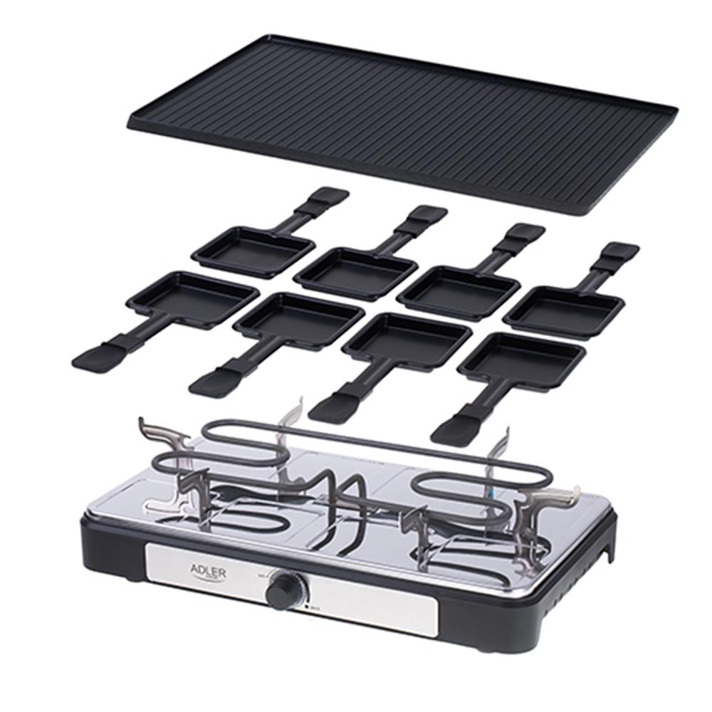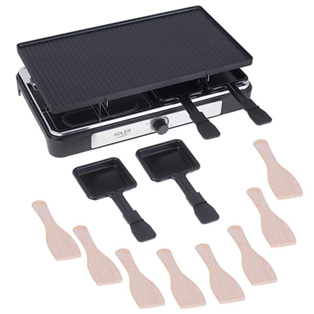Adler AD 6616 Raclette Elektrogrill, 1400 Watt, für 8 Personen, mit doppelseitiger Heizplatte