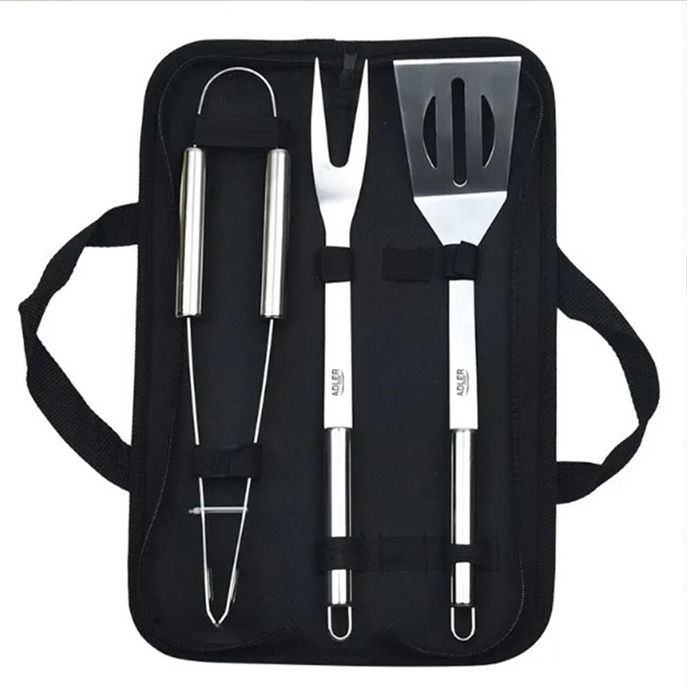 Adler AD 6730 Barbecue-Besteck-Set mit Tasche, Grillbesteck mit Spatel, Fleischgabel und Grillzange