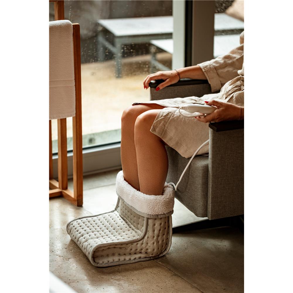 Der Fußwärmer ist die perfekte Lösung für Menschen, die leicht frieren und für Menschen mit Kreislaufproblemen in jedem Alter. Das Gerät ermöglicht die Einstellung der Heiztemperatur durch die Wahl einer von vier Heizstufen. Die Größe des Wärmers ist an die Füße bis zur Größe 46 angepasst. Das Gerät ist mit einer automatischen Abschaltfunktion nach 90 Minuten ausgestattet, um ein Überhitzen der Füße zu verhindern. Der Wärmer wurde außen aus weichem Plüsch und von innen aus kuscheliger Synthetikwolle genäht. Das Innenfutter aus Synthetikwolle ist herausnehmbar und kann zur Hygiene gewaschen werden.