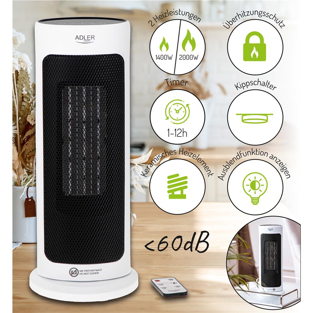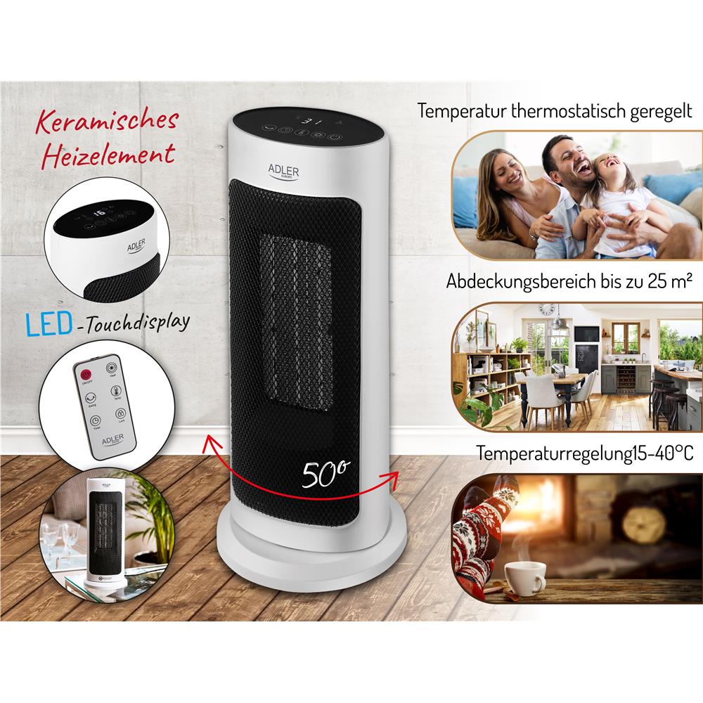 Adler AD 7738 LED-Keramik-Heizlüfter mit Fernbedienung und Zeitschaltuhr