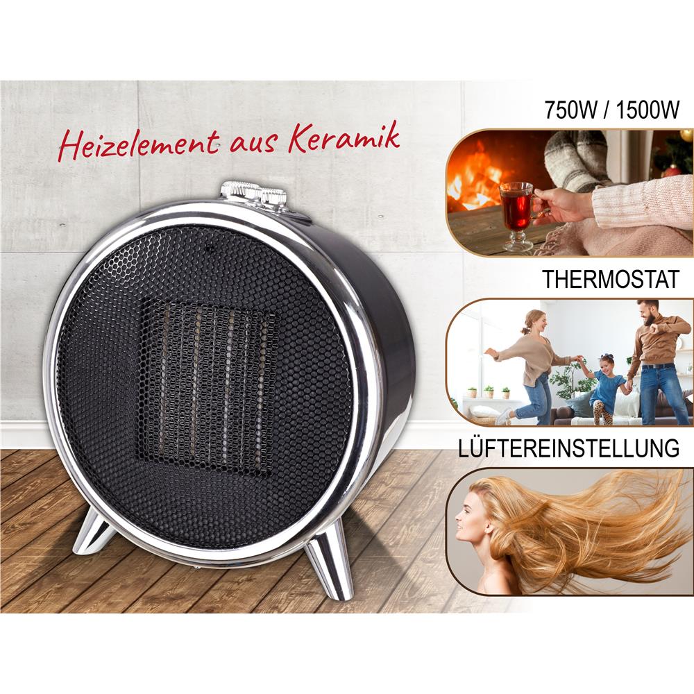 Heizkörper mit einer effizienten Keramikheizung. Die Temperatur im Gerät wird thermostatisch geregelt. Der Heizkörper hat 2 Heizleistungsstufen, 750W oder 1500W. Er verfügt über einen Sicherheitsschalter, der automatisch die Stromzufuhr unterbricht, wenn das Gerät umgestoßen wird, sowie über einen Überhitzungsschutz.