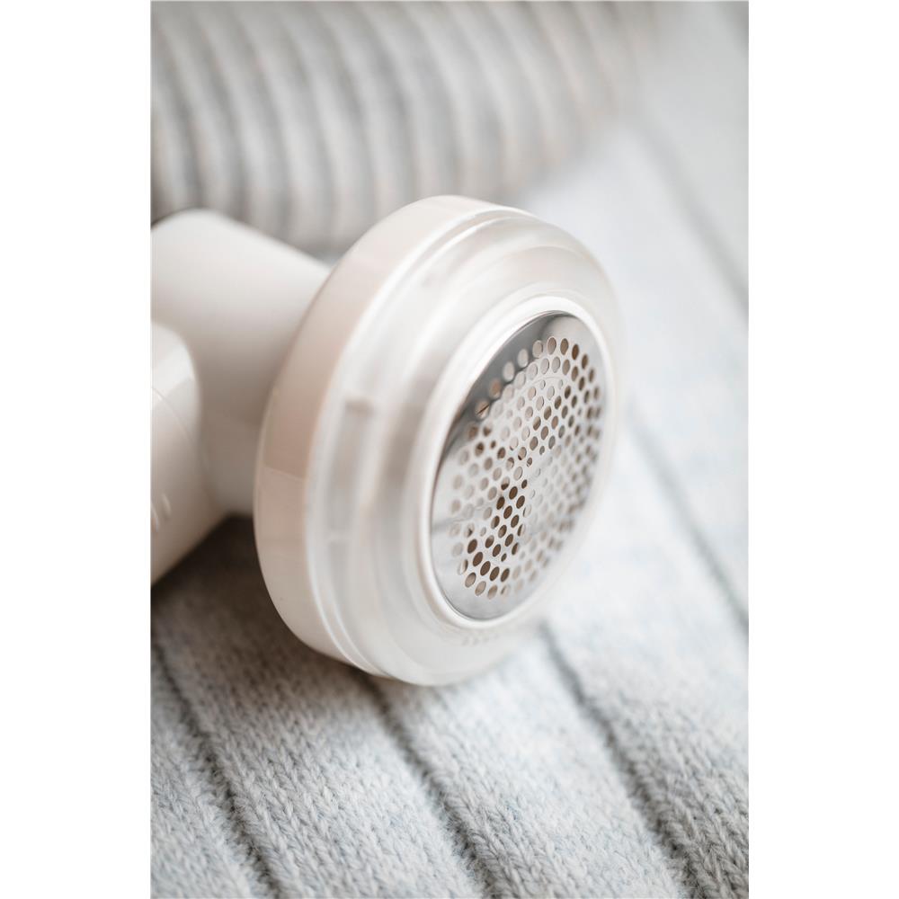 Ein Fusselentferner, der den Stoffen ihr richtiges, elegantes Aussehen zurückgibt. Dank ihm gewinnt Ihr Lieblingspullover und Polstersessel den Charme neuer Produkte zurück. Entfernt Knoten und Fussel aus Stoffen, Kleidung, Decken und sogar Teppichen. Einfach zu bedienen dank moderner Konstruktion und bequemem Griff. Eine Bürste zur Bedienung des Gerätes ist im Lieferumfang enthalten.