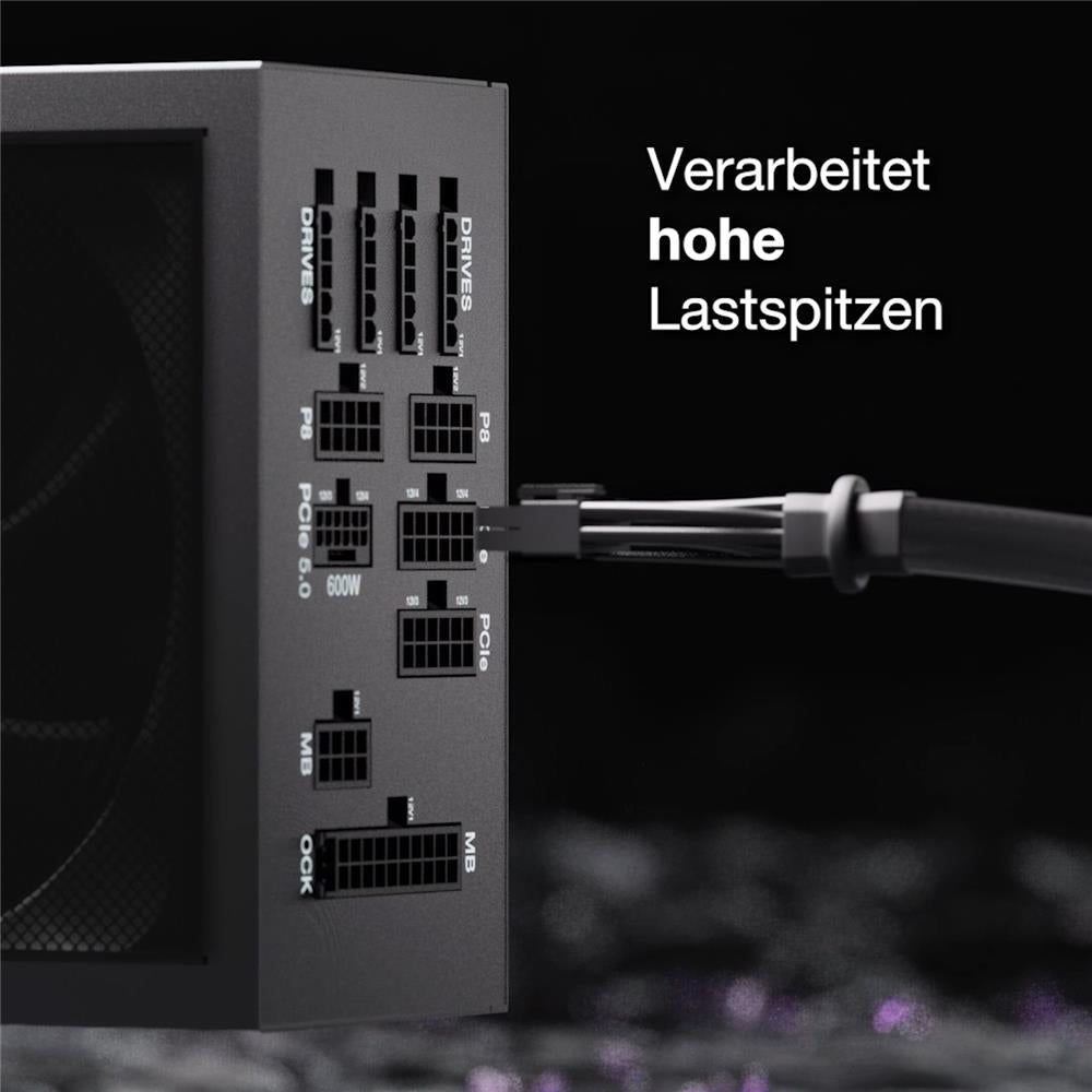 • ATX 3.0-Netzteil mit voller Unterstützung für PCIe 5.0 und 6+2 Anschlüsse für leistungsstarke GPUs.