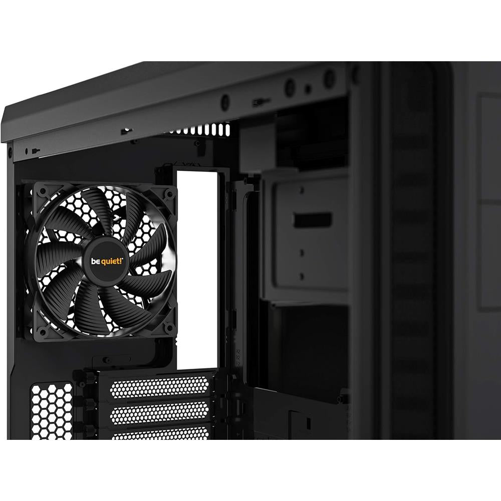 Zwei vorinstallierte Pure Wings 2 Lüfter - 120mm an der Rückseite, 140mm an der Front – sind mit neun luftstromoptimierten Lüfterblättern ausgestattet, die geräuschverursachende Turbulenzen reduzieren und den Luftdruck erhöhen. Bis zu vier Gehäuselüfter können zusätzlich installiert werden.