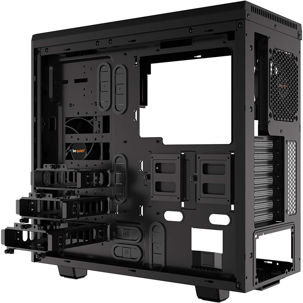 Pure Base 600 bietet zahlreiche Optionen für die Auswahl der Systemkomponenten. Die drei HDD-Slots sind verstellbar und ermöglichen so die Installation auch sehr großer Grafikkarten. Der entnehmbare ODD-Käfig bietet außerdem maximale Flexibilität für den Einbau von Laufwerken und Radiatoren.