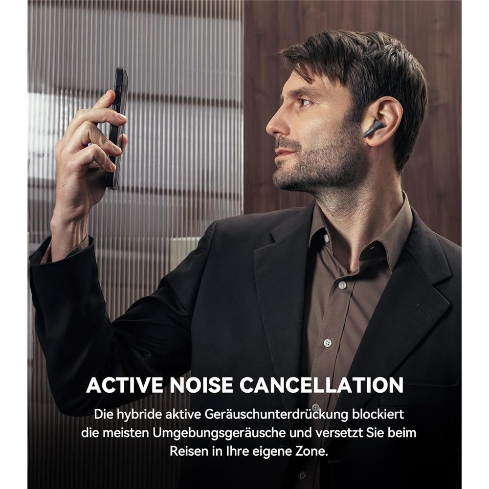 - Hybrid ANC: Blendet Umgebungsgeräusche aus und sorgt für klare Klangwelten