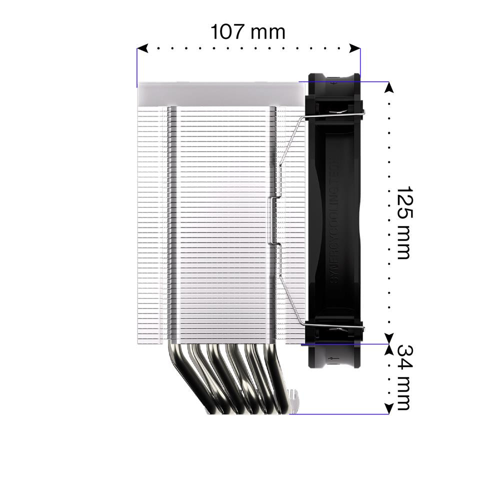 Das alles ermöglicht der asymmetrische Kühlkörper mit dicht angeordneten Kühlrippen, die die Wärme vom Prozessor absorbieren. Ein kompakter Sockel mit sechs Heatpipes optimiert den Wärmeabtransport. Der Fortis 5 ARGB bietet dir eine optimale Kühlleistung.