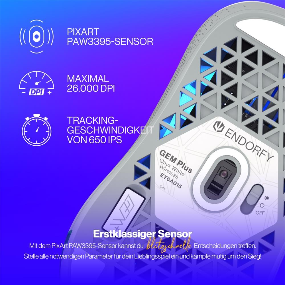 ENDORFY Gem Plus Wireless, Leichte kabellose Gaming-Maus (74 g), 26000 DPI, Weiß | EY6A015
