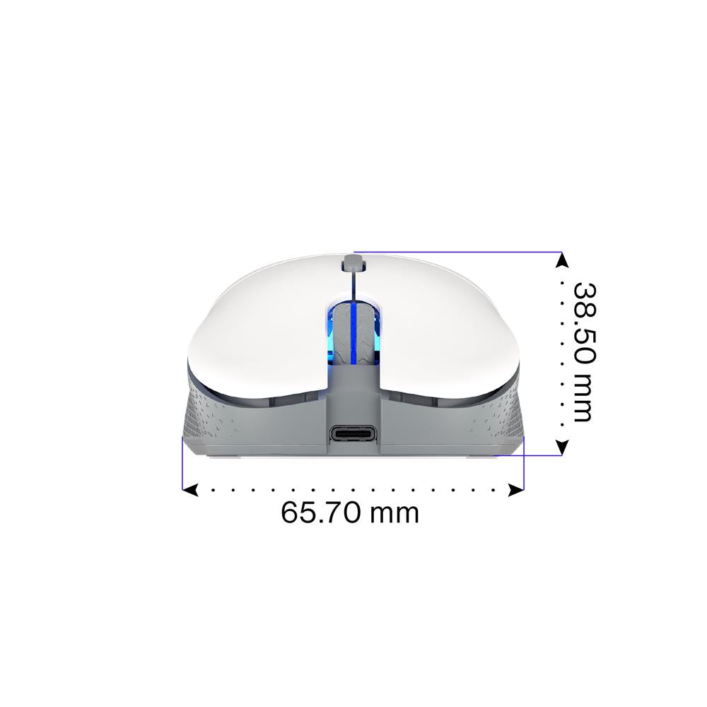 An der Unterseite haben wir der GEM Plus Wireless Onyx White Mausfüße aus PTFE hinzugefügt, die hervorragende Gleiteigenschaften und einen niedrigen Widerstand bieten. Genauigkeit und optimale Leistung beim Spielen!