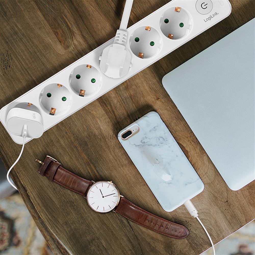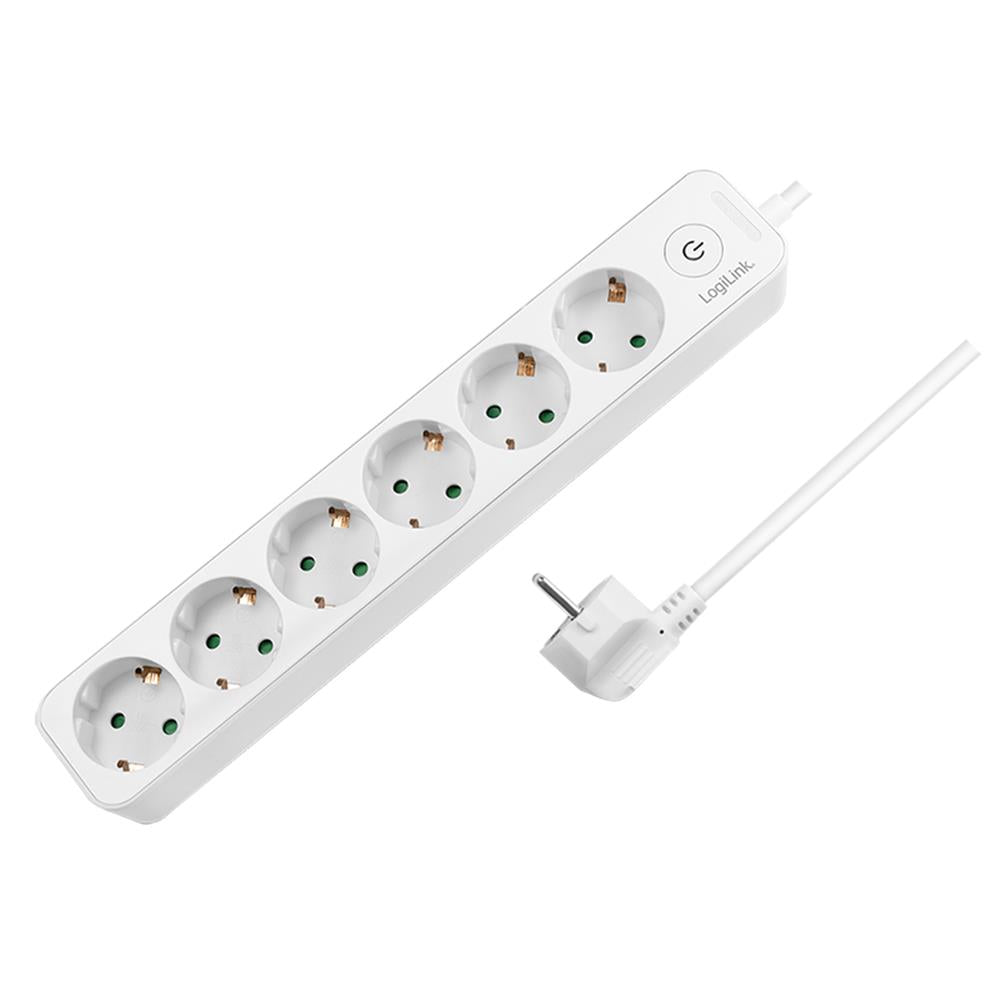 LogiLink Steckdosenleiste 6-fach mit Schalter, 6x Schutzkontaktbuchse, 1,5m, Weiß